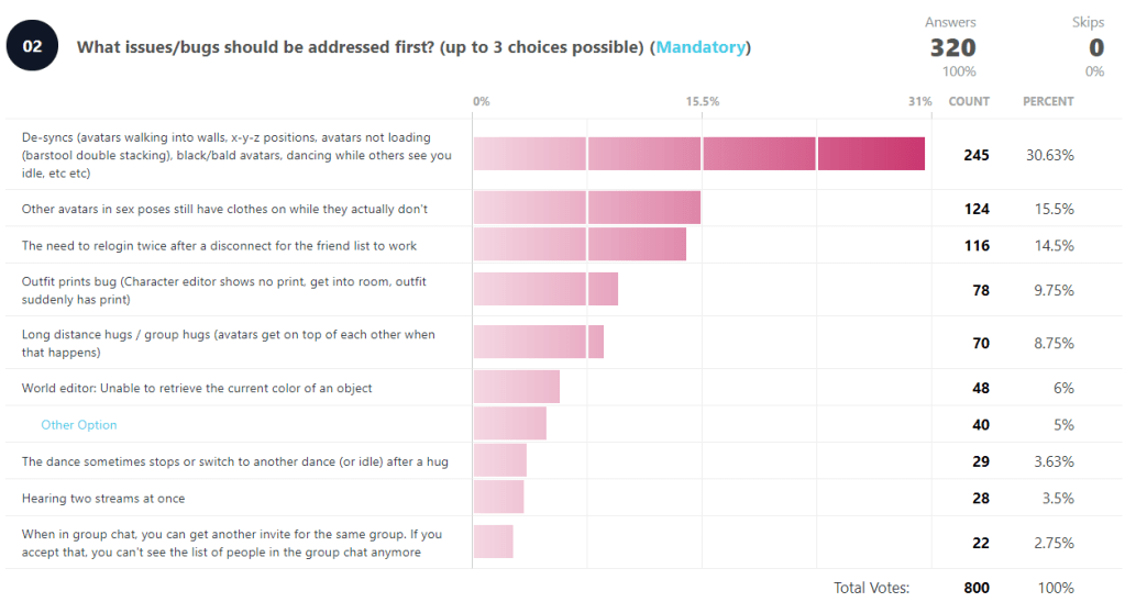 Question 1: Are you facing bugs in 3DXChat? If yes – how often?