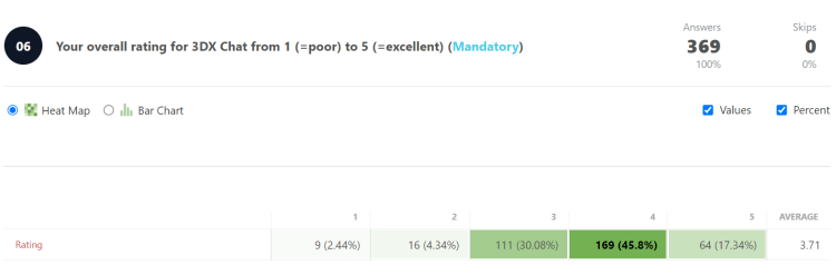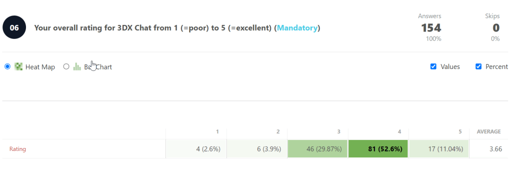 Question 6: Your overall rating for 3DX Chat from 1 (=poor) to 5 (=excellent)