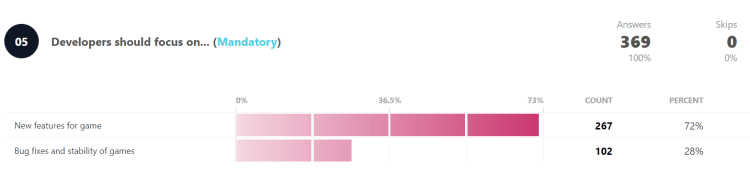 • Still “De-syncs” with 29% are the most annoying bug according to all participants.