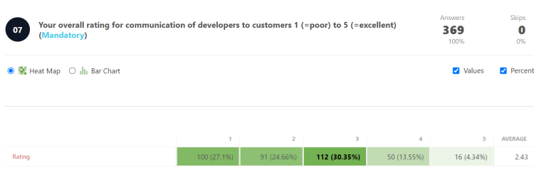 Question 7: Your overall rating for communication of developers to customers 1 (=poor) to 5 (=excellent)
