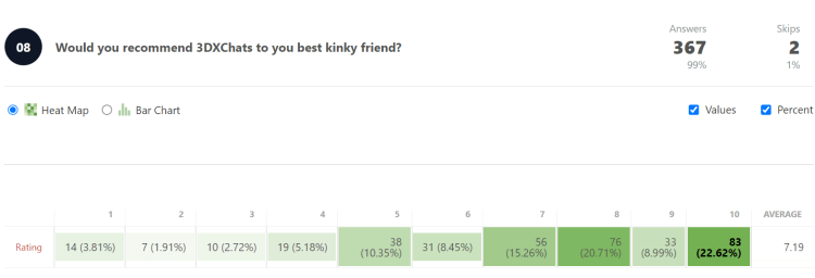 Question 8: Would you recommend 3DXChats to you best kinky friend? (Net Promoter Score)