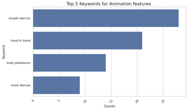 This visualization provides a clear view of the distribution of feedback across the different main categories. As we can see, ‘Sex features’ has the highest number of feedback entries, followed by ‘Avatar features’ and ‘Dressing features’.